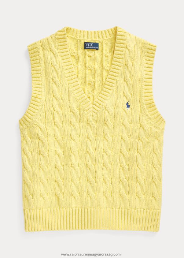 kábel kötésű pamut V-nyakú pulóver mellény 2680482903 nők Ralph Lauren beekman sárga