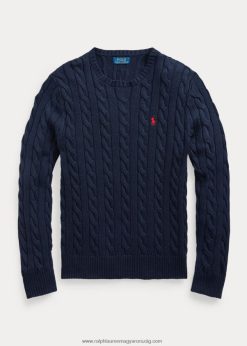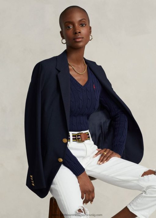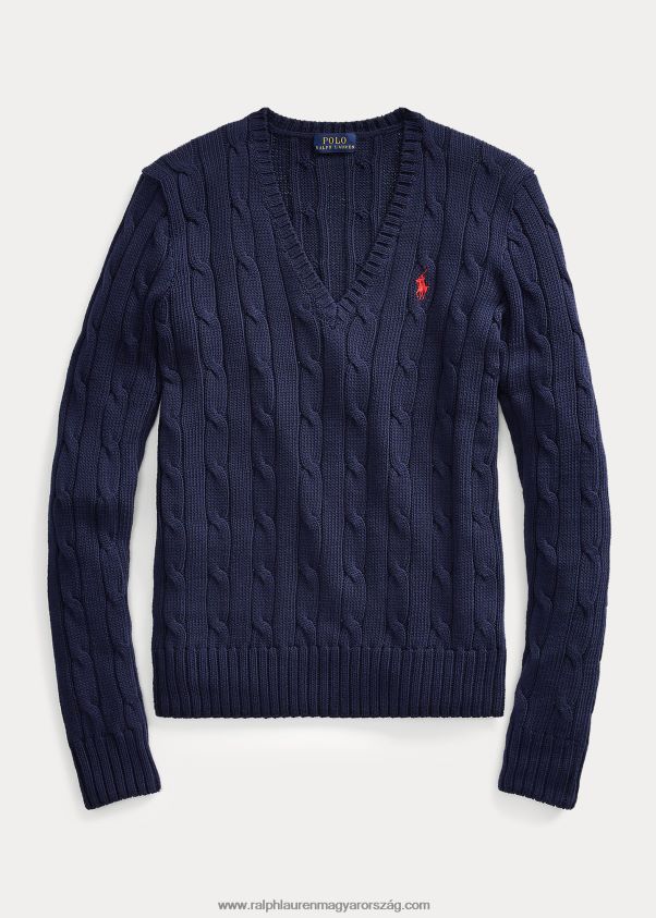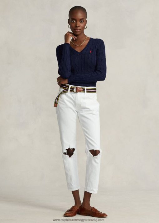 Kábelkötésű felépítésével és vékonyan szabott sziluettjével ez a pamut V-nyakú pulóver időtlen stílust és modern vonzerőt kölcsönöz. a mi jellegzetes, hímzett pónival van befejezve az örökség ihlette hangulatért.