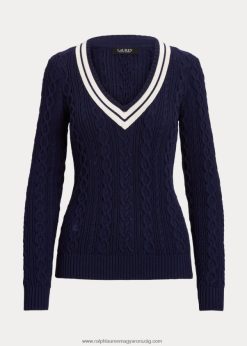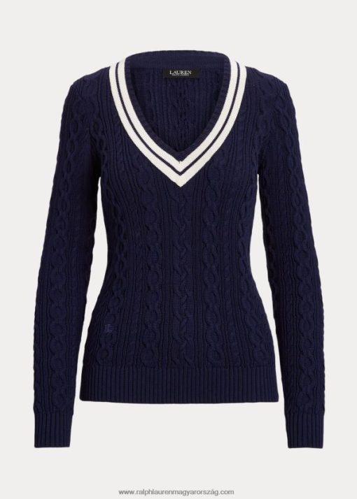kábelkötésű krikettpulóver 2680484379 nők Ralph Lauren finomított sötétkék/krém