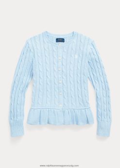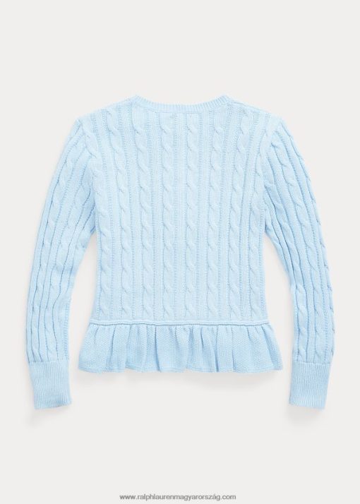 Közepes súlyú fésült pamut és játékos peplum szegély teszi ezt a kardigán bájos viseletet egész évben.