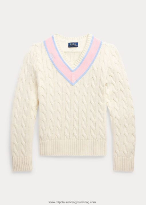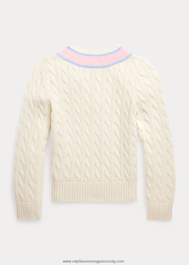 kábelkötésű pamutkeverék krikett pulóver 2680487079 gyerekek Ralph Lauren klubházi krém