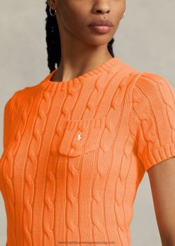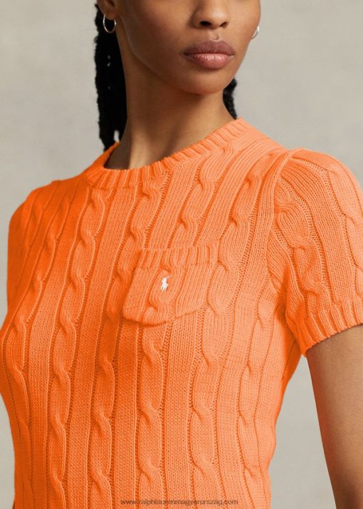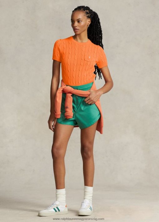 kábelkötésű, rövid ujjú pamut pulóver 2680482896 nők Ralph Lauren világos narancs