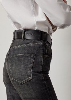 A magas emelkedéssel és laza csizmával tervezett kaida jean a hagyományos cowboy farmer nadrágból merít ihletet, amely a technikai sportruházat egyik legkorábbi példája. enyhén mosott, enyhén mosott, finom horzsolásokkal díszített, olasz gyártmányú pár, amely az érme zsebében bőrfüllel, hátulján pedig ‘ralph lauren’-vel van kivágva. dombornyomott bőrfolt, mindegyiket csiszolt fekete szegecsekkel díszítették.