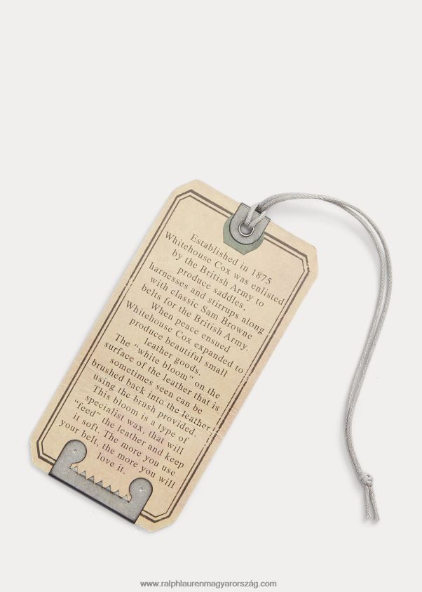 Angliában, hagyományos módszerekkel kézzel készített öv a Whitehouse Cox híres kantárbőréből készült, és idővel puhább lesz. szőtt pamutpánttal, bőrrel bevont csattal, és jellegzetes pónival van ellátva.