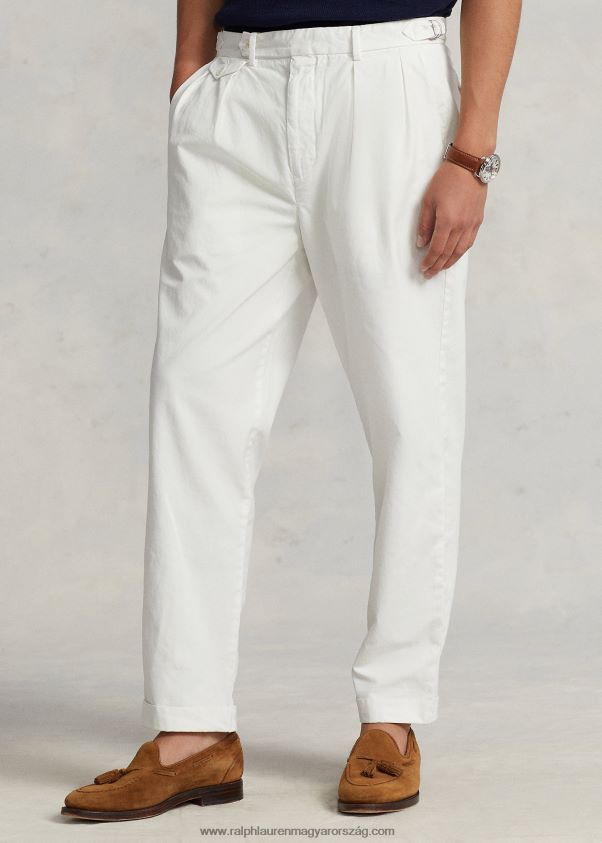 karcsú, elkeskenyedő fazonú redős twill nadrág 2680488408 férfiak Ralph Lauren fedélzetmosó fehér