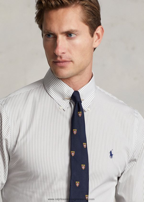 karcsú szabású csíkos poplin ing 268048381 férfiak Ralph Lauren szürke köd