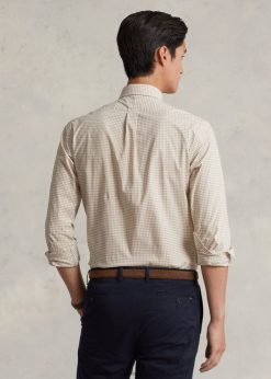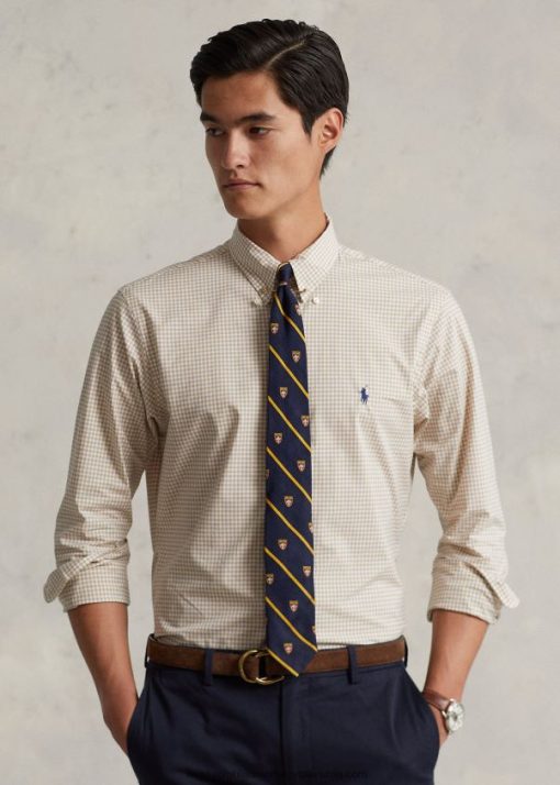 karcsú szabású gingham stretch poplin ing 268048814 férfiak Ralph Lauren vintage khaki/fehér