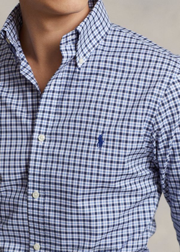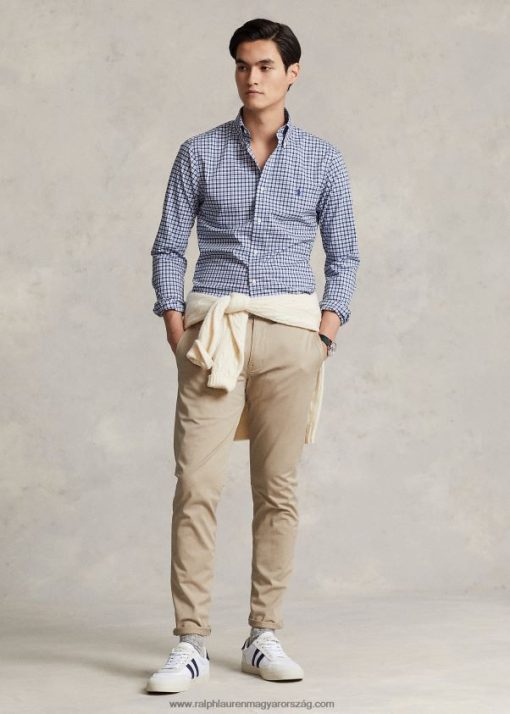 karcsú szabású kockás poplin ing 2680481141 férfiak Ralph Lauren haditengerészet multi