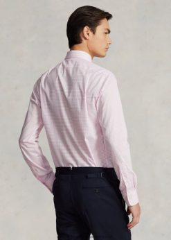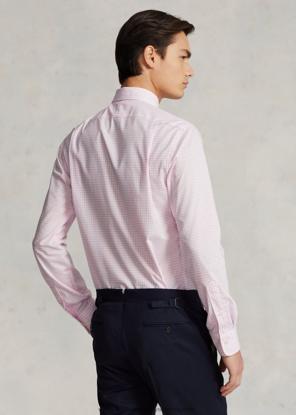 karcsú szabású kockás poplin ing 268048745 férfiak Ralph Lauren karmel rózsaszín/fehér