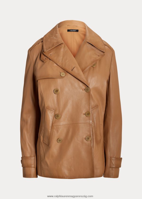 kétsoros nappa bőr kabát 2680489527 nők Ralph Lauren sötét teve