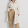 Klasszikus kétsoros sziluettel és öves derékkal tervezték ezt az elsöprő kabátot pamutkeverék twillből a könnyű tapintás és a polírozott megjelenés érdekében. A hagyományos stílus részletei – beleértve a gombos vállpántokat, a gombos torokzárat és a viharszárnyakat – fokozzák a kifinomult vonzerőt, míg a „lauren ralph lauren”-gravírozott kürt hatású gombok jellegzetes érintést kölcsönöznek. A ralph lauren a jobb gyapottal együttműködve javítja a gyapottermesztést világszerte.