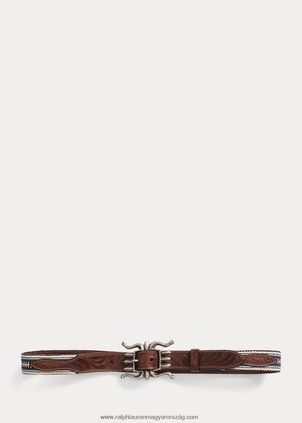 kézi szövésű jacquard és bőr öv 2680482229 férfiak Ralph Lauren krém multi/barna