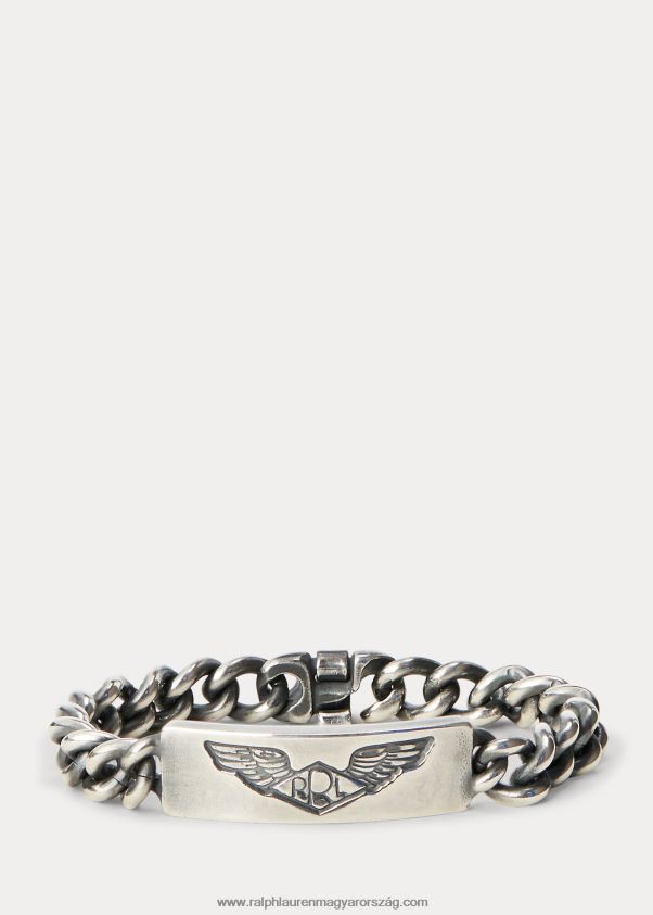 A tömör 0,925-ös sterling ezüstöt kovácsolják és teljes egészében kézzel fejezik ki Amerikában. Az életkorral és a kopással minden darab egyedi patinát fejleszt ki lassan. járdaszegélyes lánc. szárnyas-”rrl” logó vésett az emléktáblán. egyedi tervezésű csat.