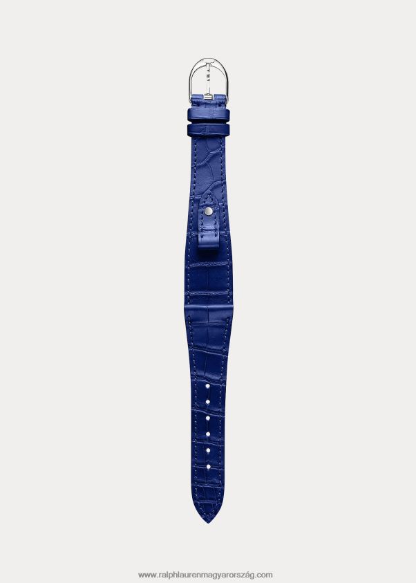 A legkiválóbb aligátorból Franciaországban készült, cserélhető óraszíj egyedi kengyel-ihlette záródással, hogy illeszkedjen a ralph lauren kengyelkollekciójának kis óráihoz.