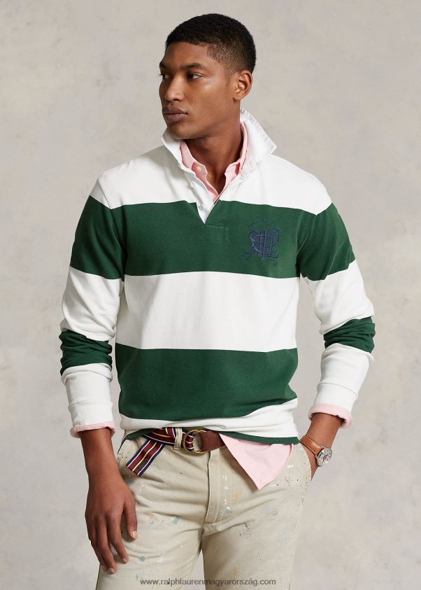 klasszikus szabású csíkos jersey rögbi ing 268048797 férfiak Ralph Lauren sportos zöld multi
