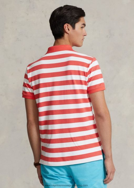 klasszikus fazonú csíkos hálós póló 2680488426 férfiak Ralph Lauren vörös zátony/fehér