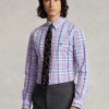 klasszikus szabású kockás sztreccs poplin ing 268048453 férfiak Ralph Lauren piros/sárga multi