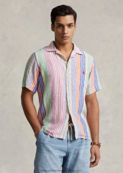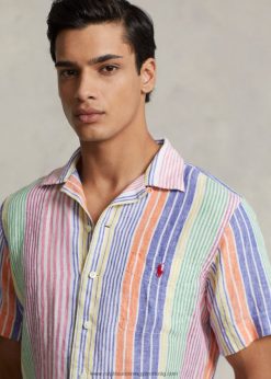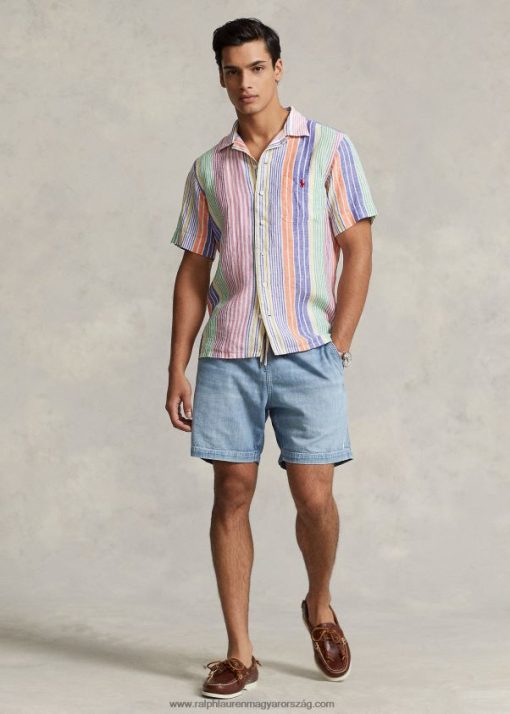 klasszikus fazonú csíkos vászon tábori ing 2680481009 férfiak Ralph Lauren fehér/királyi multi