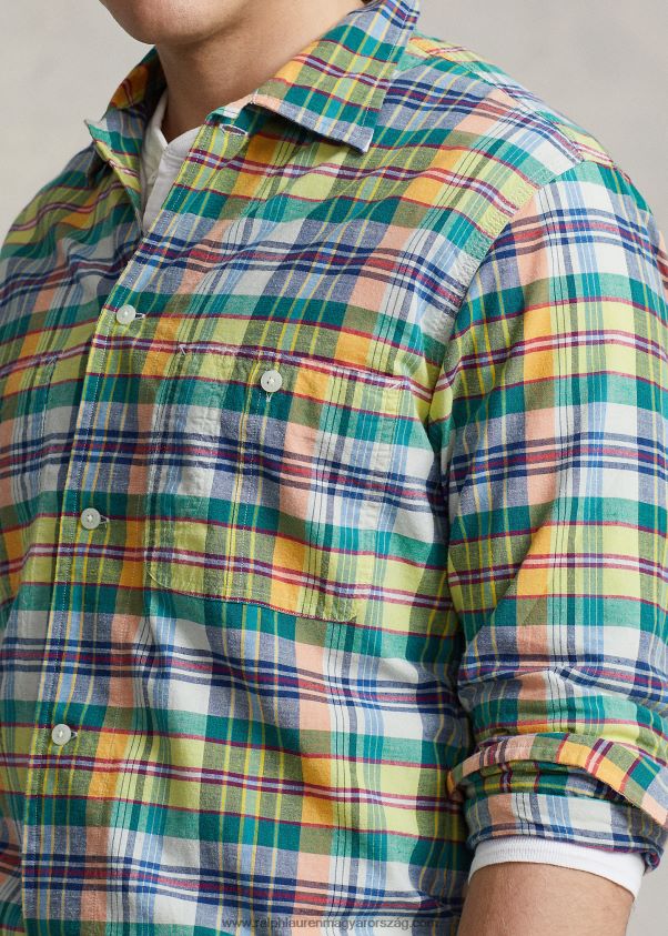 klasszikus fazonú indigó madras ing 2680488385 férfiak Ralph Lauren sárga/zöld multi