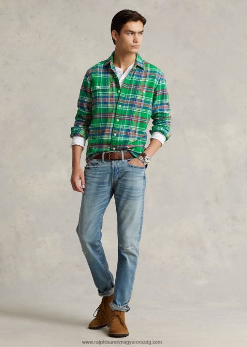 klasszikus fazonú kockás flanel munkaing 2680481064 férfiak Ralph Lauren zöld/sárga multi