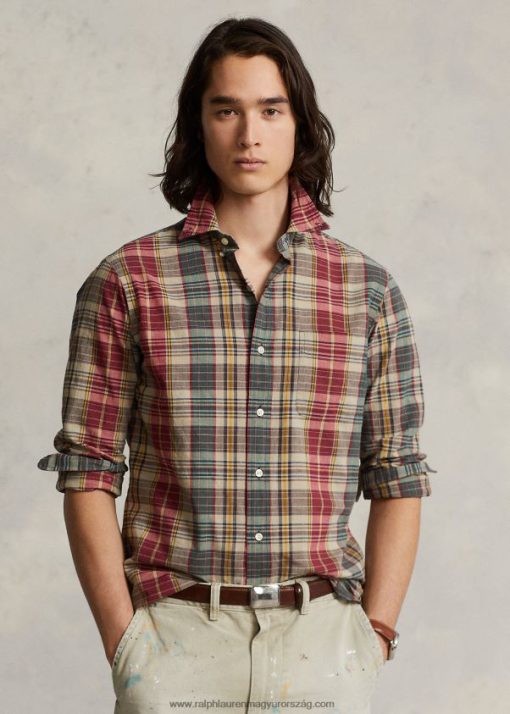 klasszikus fazonú kockás ing 2680488430 férfiak Ralph Lauren bézs/piros multi
