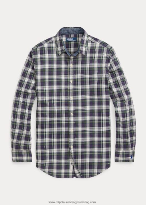 klasszikus fazonú kockás mosott poplin ing 2680488594 férfiak Ralph Lauren zöld/sárga multi