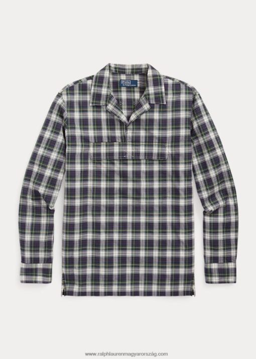 klasszikus fazonú kockás poplin popover ing 2680481271 férfiak Ralph Lauren zöld/sárga multi