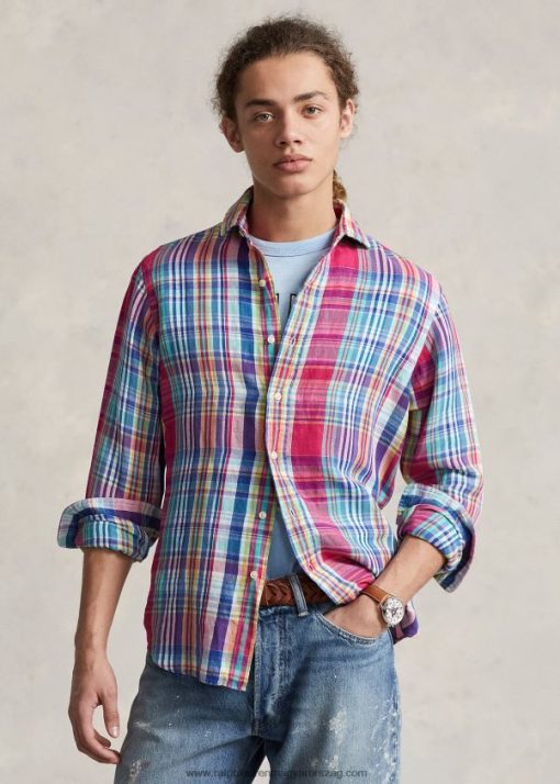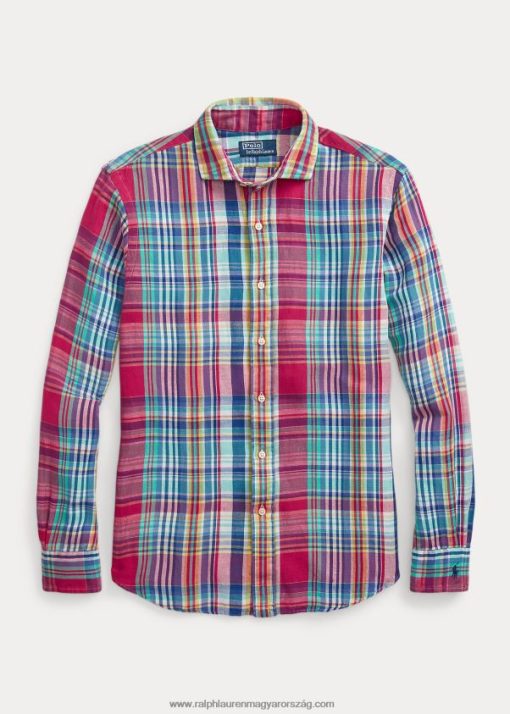 klasszikus fazonú kockás vászon-pamut ing 268048945 férfiak Ralph Lauren sötét rózsaszín/sötétkék multi