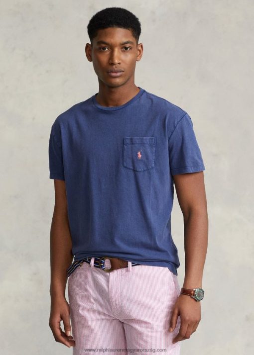 klasszikus fazonú pamutvászon zsebes póló 268048371 férfiak Ralph Lauren világos tengeri
