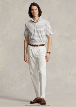 klasszikus szabású csíkos dzsörzé póló 2680481180 férfiak Ralph Lauren tavaszi hanga/fehér