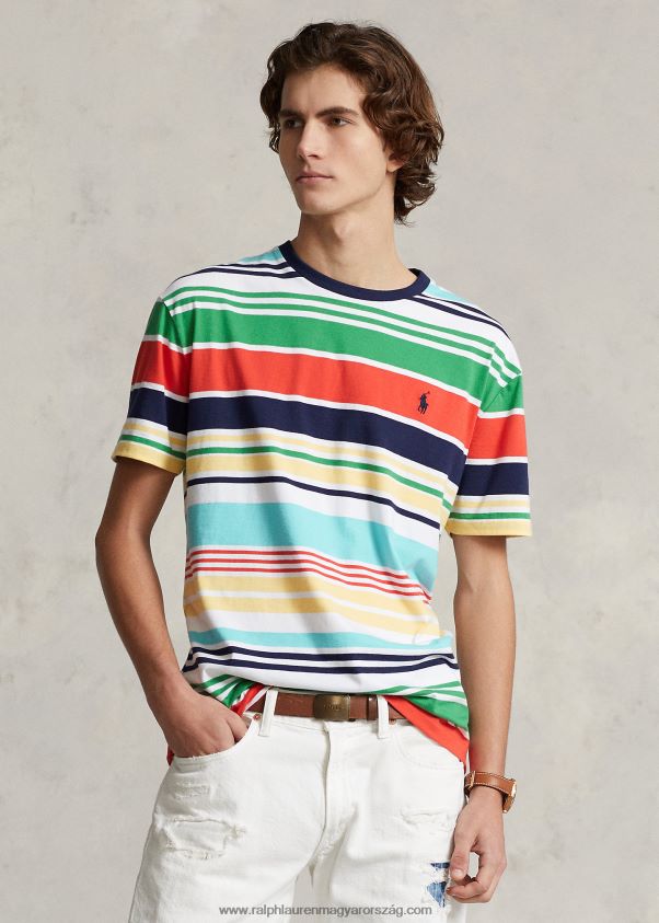 klasszikus szabású csíkos jersey póló 268048322 férfiak Ralph Lauren fehér multi