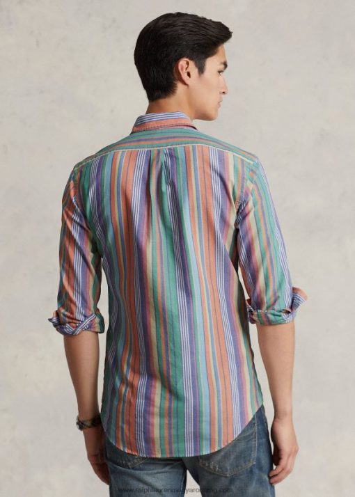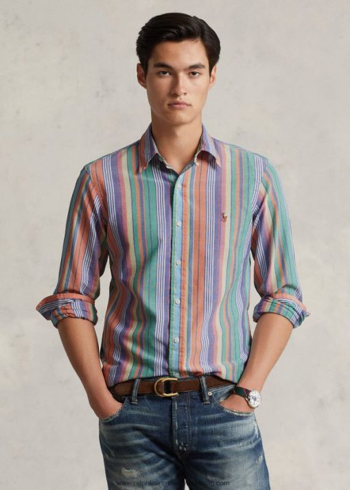klasszikus szabású csíkos oxford ing 2680488419 férfiak Ralph Lauren narancs/zöld multi