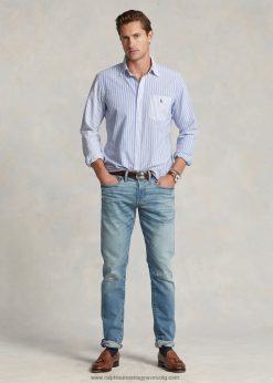 klasszikus szabású csíkos oxford vidám ing 268048769 férfiak Ralph Lauren kék vidám póló
