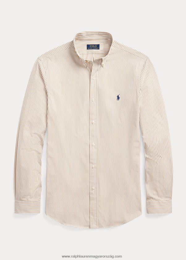 klasszikus szabású csíkos sztreccs poplin ing 268048775 férfiak Ralph Lauren vintage khaki/fehér