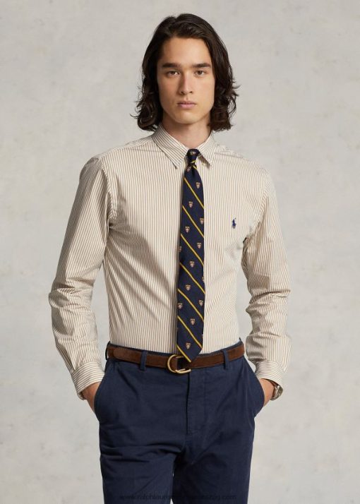 klasszikus szabású csíkos sztreccs poplin ing 268048775 férfiak Ralph Lauren vintage khaki/fehér