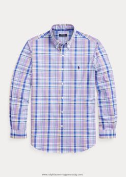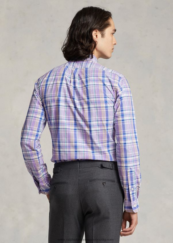 klasszikus szabású kockás sztreccs poplin ing 268048572 férfiak Ralph Lauren lila/sárga multi
