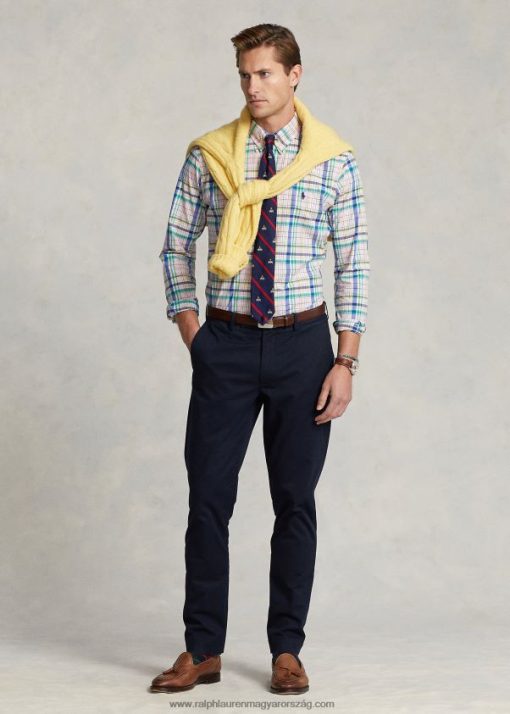 klasszikus szabású kockás sztreccs poplin ing 268048453 férfiak Ralph Lauren piros/sárga multi