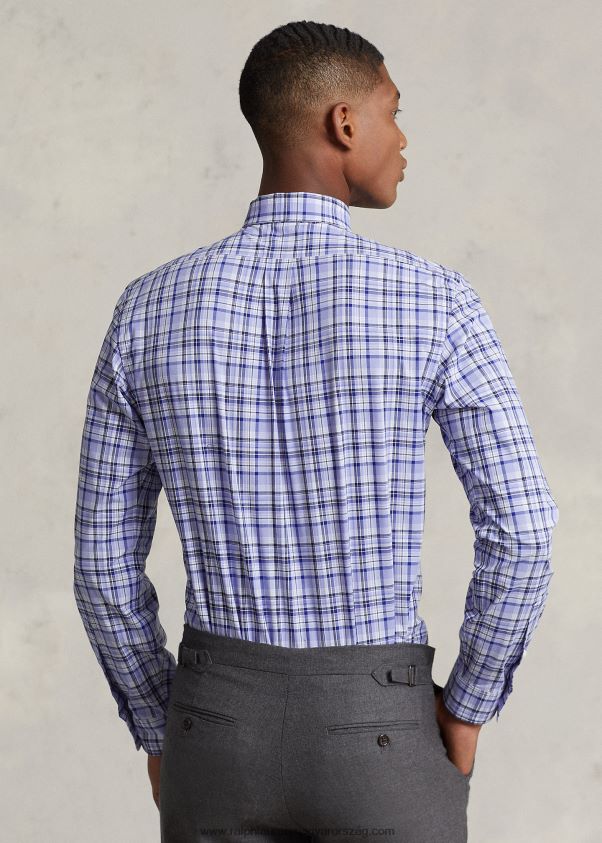 klasszikus szabású kockás sztreccs poplin ing 268048574 férfiak Ralph Lauren világoskék multi