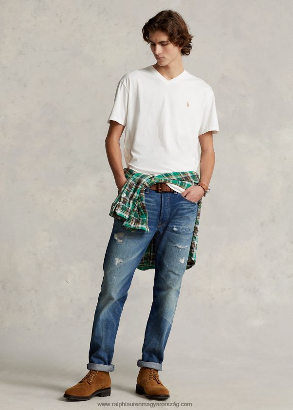 klasszikus szabású mez V-nyakú póló 268048203 férfiak Ralph Lauren fedélzetmosó fehér