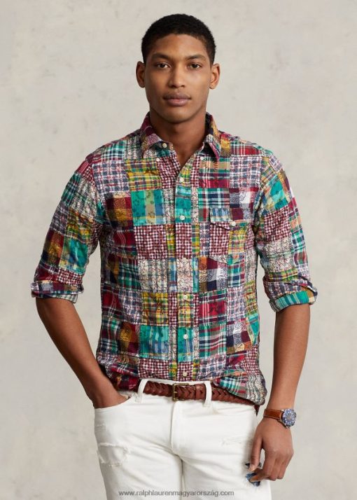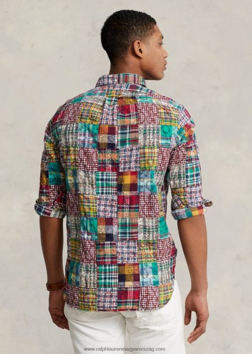 klasszikus szabású patchwork madras ing 2680488472 férfiak Ralph Lauren preppy patchwork