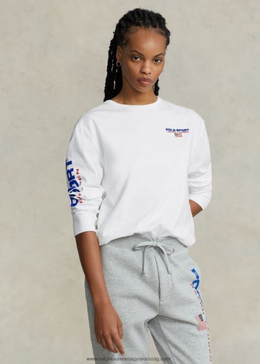 Ezen a puha pamutdzsörzéből készült uniszex hosszú ujjú pólón az archív „polo sport” logónk látható 1992-ből.
