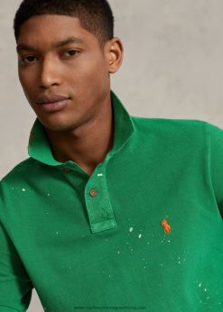 vékony szabású hálós kényelmes póló 26804821 férfiak Ralph Lauren naplemente zöld/rózsaszín