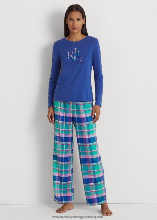 kockás hosszú ujjú pizsama garnitúra 2680489576 nők Ralph Lauren kék kockás