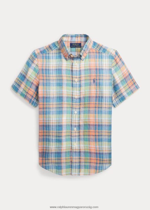 kockás vászon rövid ujjú ing 2680486086 gyerekek Ralph Lauren kék/narancssárga multi