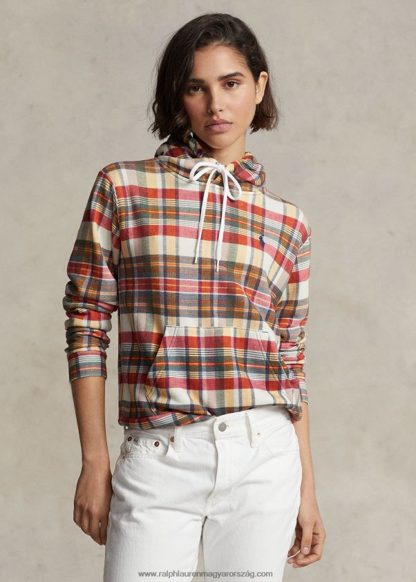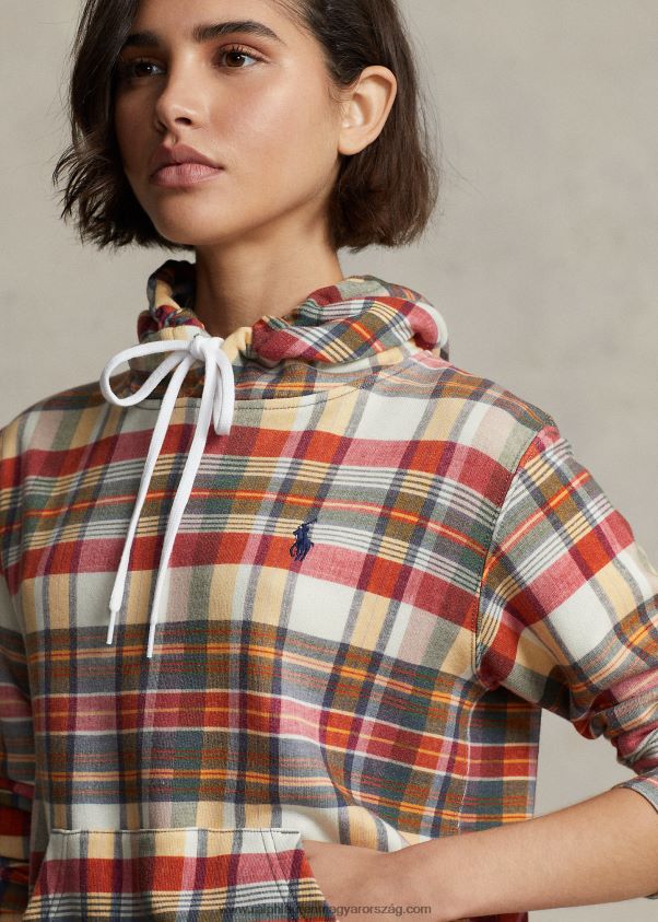 kockás zsugorított szabású francia frottír kapucnis pulcsi 2680483169 nők Ralph Lauren madras multi