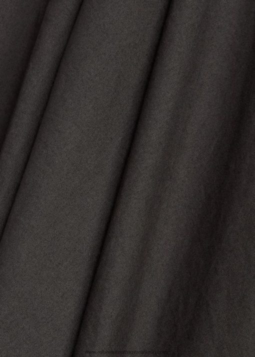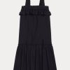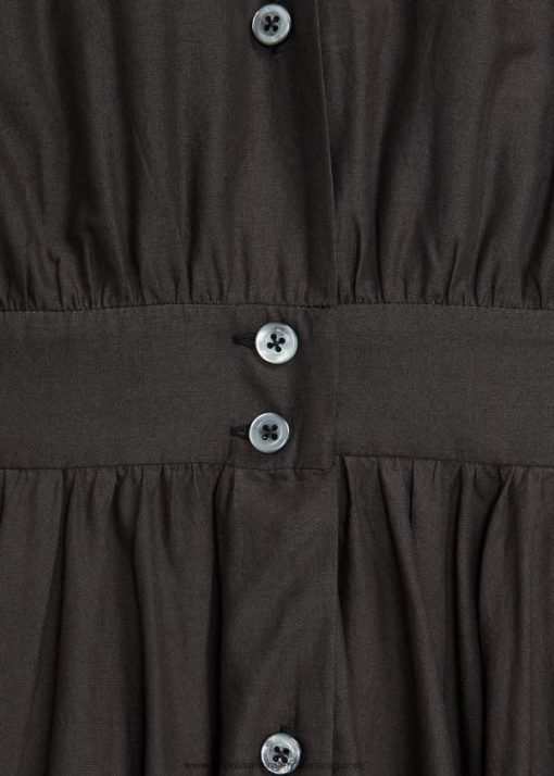 könnyű pamutból készült. század közepi nappali ruha ihlette. kontrasztos dupla gallér zsebkendő-öltésekkel. ujjatlan sziluett, derékban összehúzott és telt szoknya.