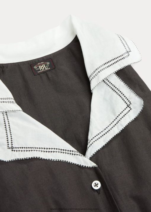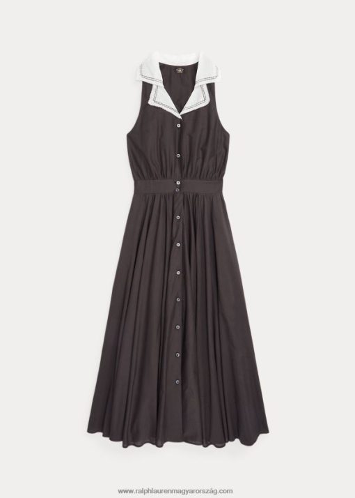 kontrasztgalléros pamut voile ruha 2680483620 nők Ralph Lauren fekete-fehér