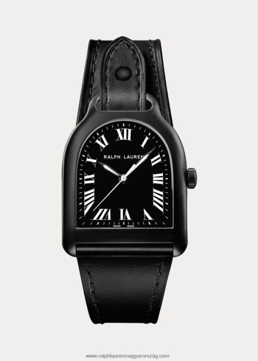 A modern óragyártás világának ikonikus sziluettje, a ralph lauren kengyelkollekciója egy új, fekete bevonatú modellsorozattal bővült. Egyedülálló megjelenésű, miközben megőrzi a jellegzetes lovas ihletésű örökséget és az eredeti kengyel elegáns kifejezését, ez a közepes modell matt acél házzal rendelkezik, amelyet egy olyan technikai kezelés tette lehetővé, amely az acélt fenséges megfeketedett patinával alakítja át. Az rl300-1 kaliberű, öntekercselő gyártású mechanikus szerkezet hajtja, amely 42 órás teljesítménytartalékot biztosít, ez a vízálló óra a svájci gyártású műszaki precizitás csúcsa. a lakkozott fekete számlap törtfehér római számokat, egy nyomtatott percsávot, oxidált kard alakú mutatókat és egy elsöprő másodpercmutatót emel ki. A lovas nyergét imitáló cserélhető szíj kis füllel és csappal rendelkezik, amely az óraházat a kontrasztvarrással ellátott, rugalmas borjúbőr szíjhoz rögzíti.