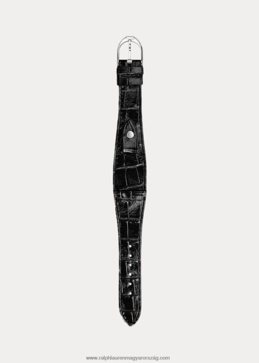 A legkiválóbb aligátorból Franciaországban készült, cserélhető óraszíj egyedi kengyel-ihlette záródással, hogy illeszkedjen a ralph lauren kengyelkollekciójának közepes méretű óráihoz.