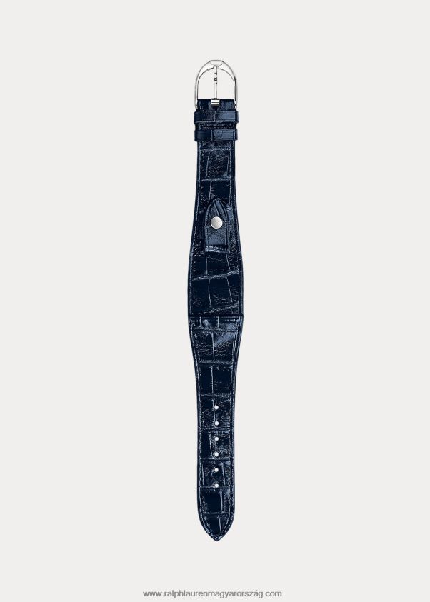 A legkiválóbb aligátorból Franciaországban készült, cserélhető óraszíj egyedi kengyel-ihlette záródással, hogy illeszkedjen a ralph lauren kengyelkollekciójának közepes méretű óráihoz.